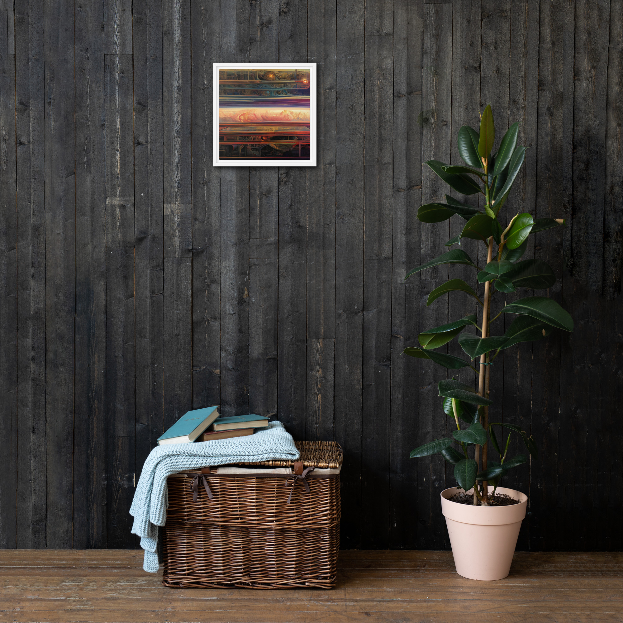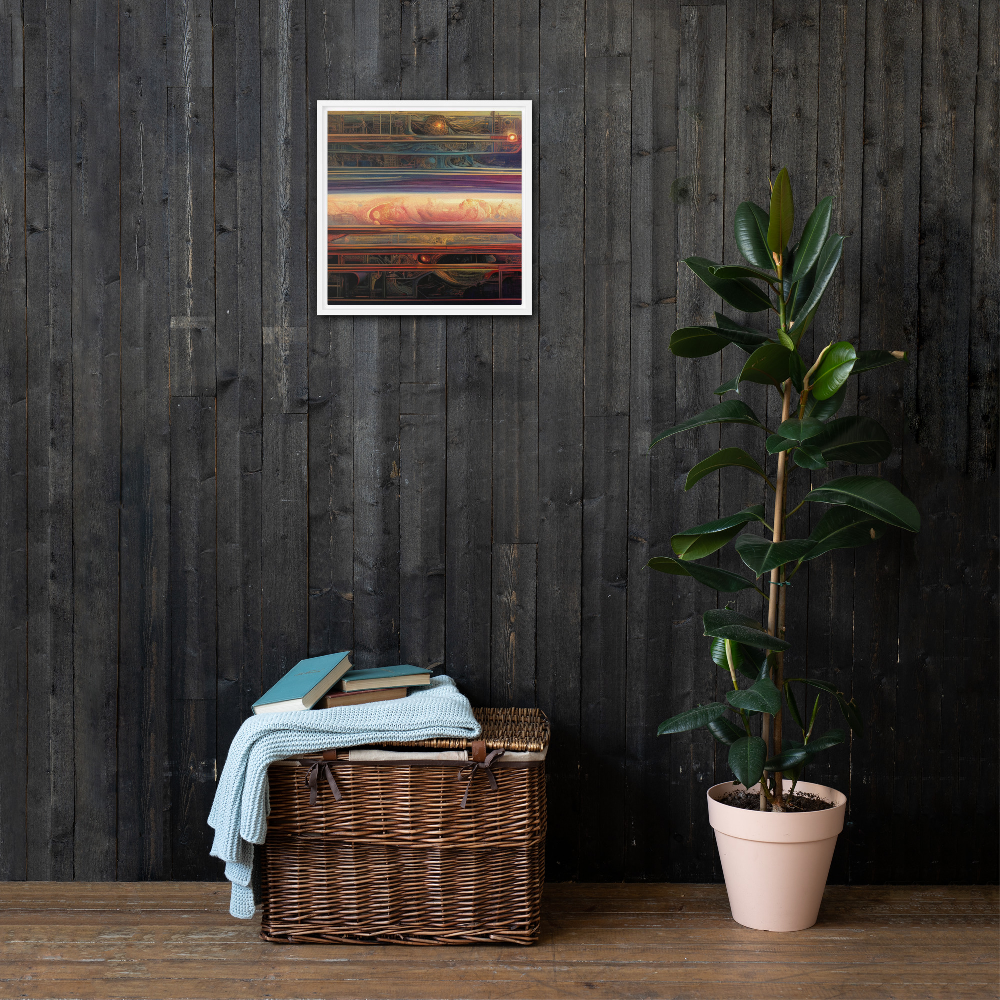 Spice up your blank walls with this head-turning framed canvas! This high-quality pine tree framed canvas comes with rubber pads on the back corners and wall mount that makes hanging the artwork hassle-free. What’s more, the frame gives the canvas a cool floating effect!