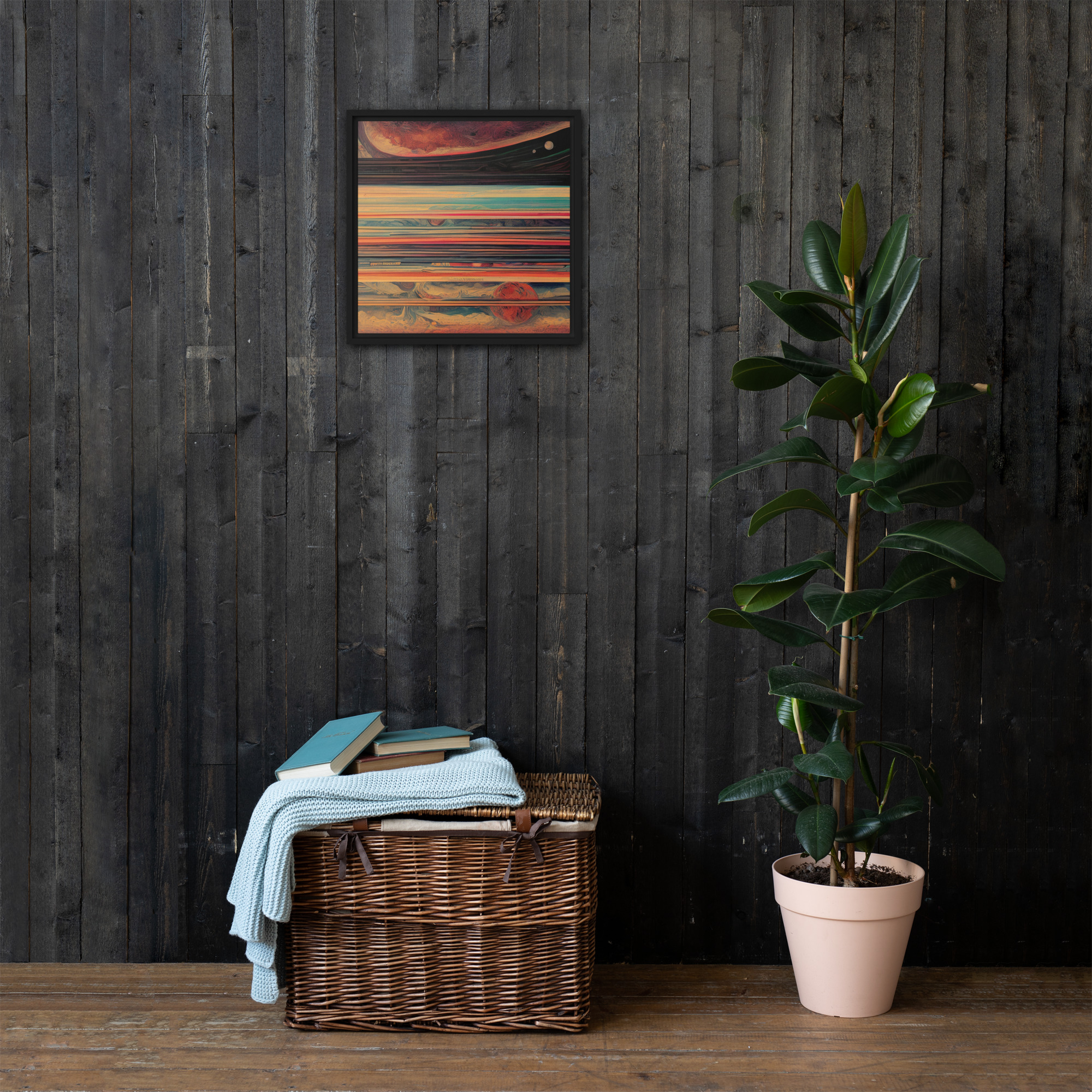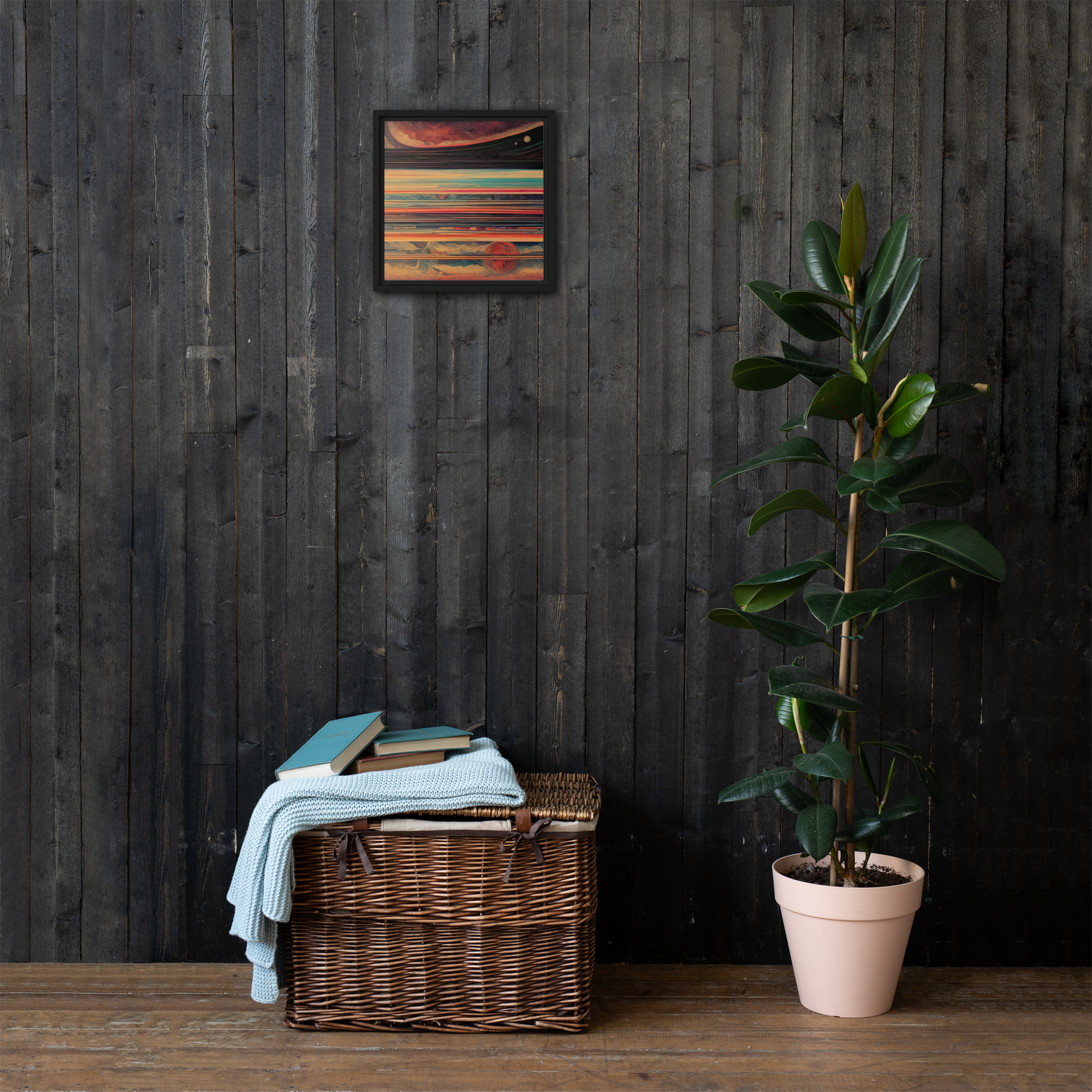 Spice up your blank walls with this head-turning framed canvas! This high-quality pine tree framed canvas comes with rubber pads on the back corners and wall mount that makes hanging the artwork hassle-free. What’s more, the frame gives the canvas a cool floating effect!