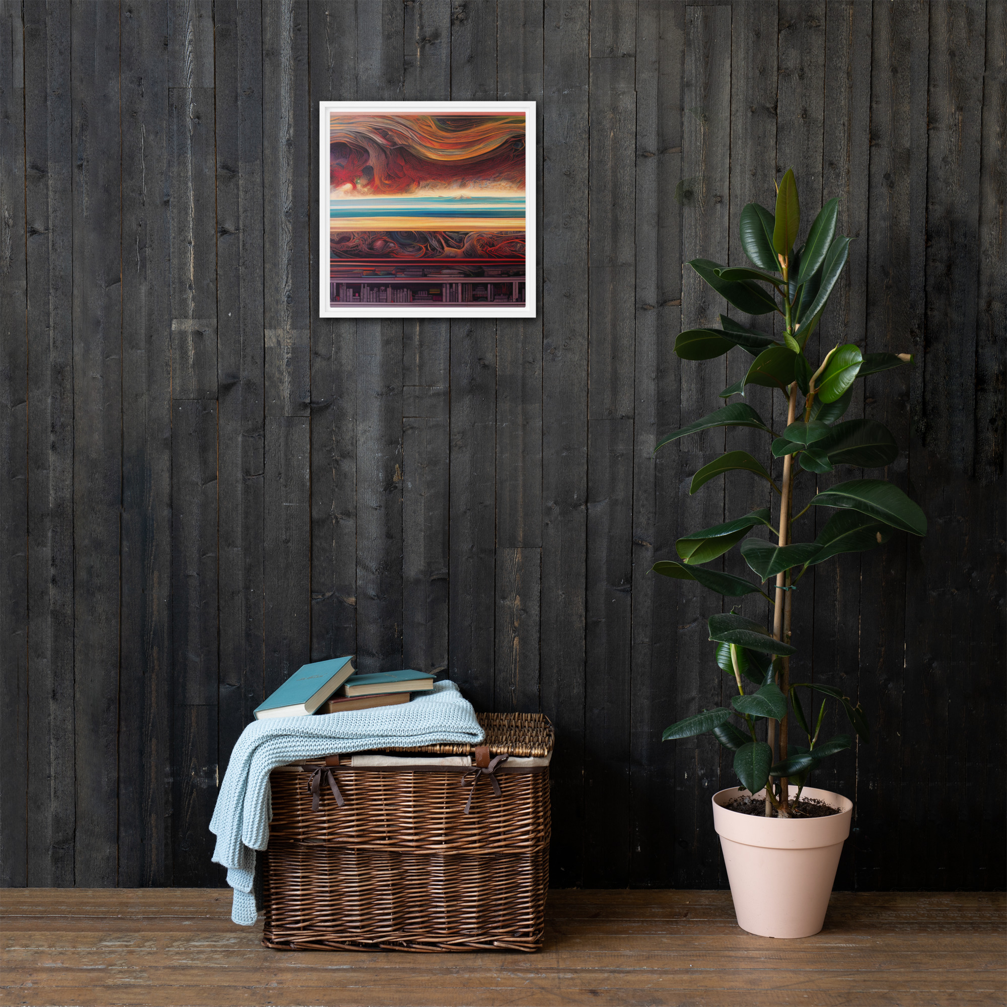 Spice up your blank walls with this head-turning framed canvas! This high-quality pine tree framed canvas comes with rubber pads on the back corners and wall mount that makes hanging the artwork hassle-free. What’s more, the frame gives the canvas a cool floating effect!